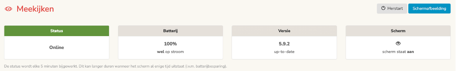 Let op: deze gegevens worden elke 5 minuten bijgewerkt en kunnen dus iets achterlopen. Als het scherm al enige tijd uitstaat kan het zijn dat de status updates langer duren.