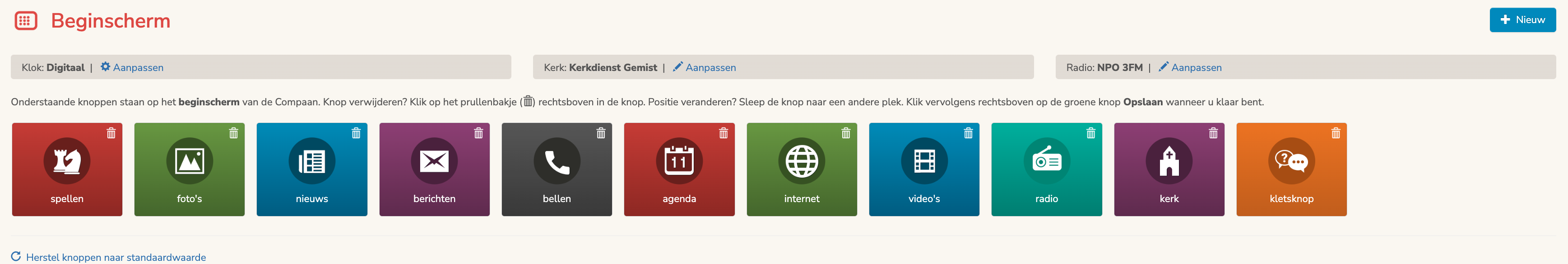 Als beheerder kunt u het beginscherm van de Compaan zelf aanpassen.
