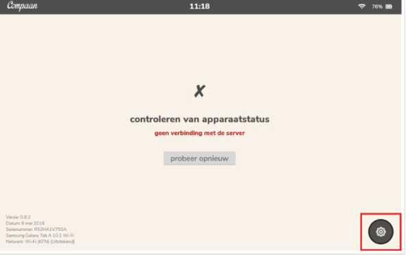 Krijgt u de melding geen verbinding met server of kan het centrale Compaan-systeem niet gebruiken? Dan is er nog geen goede internetverbinding.