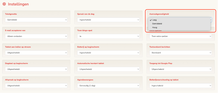 Zet de aanraakgevoeligheid op laag, gemiddeld of hoog.