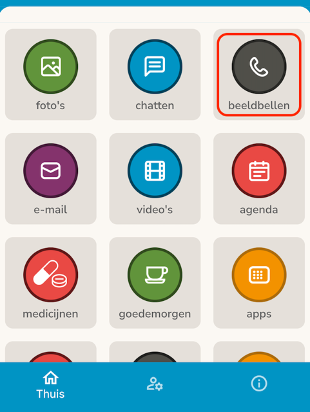 Open de Familie Portaal app en klik op de grijze knop 'beeldbellen'.