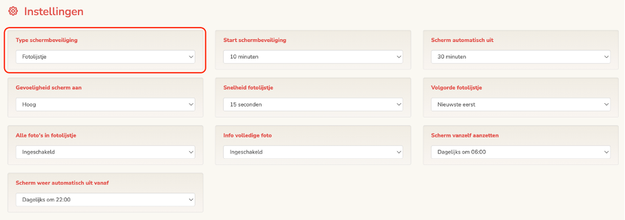 - Start schermbeveiliging: u kunt aangeven na hoeveel minuten het fotolijstje wordt gestart.