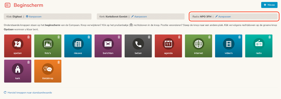 Klik naast radio op 'aanpassen'.
