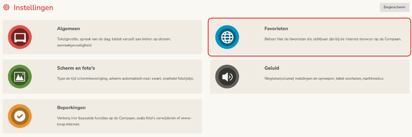 U kunt een internet favoriet toevoegen op de Compaan zelf en in het Familie Portaal.