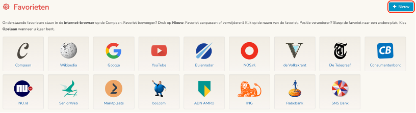 Door internet favorieten toe te voegen kan de Compaan-gebruiker gemakkelijk naar zijn of haar meest gebruikte internetpagina’s gaan zonder steeds de gehele website in te hoeven voeren.