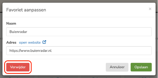 Favoriete pagina verwijderen