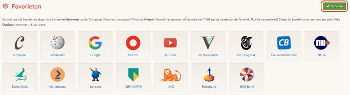 In het Familie Portaal kunt u internet favorieten verwijderen en de volgorde van de favorieten aanpassen.